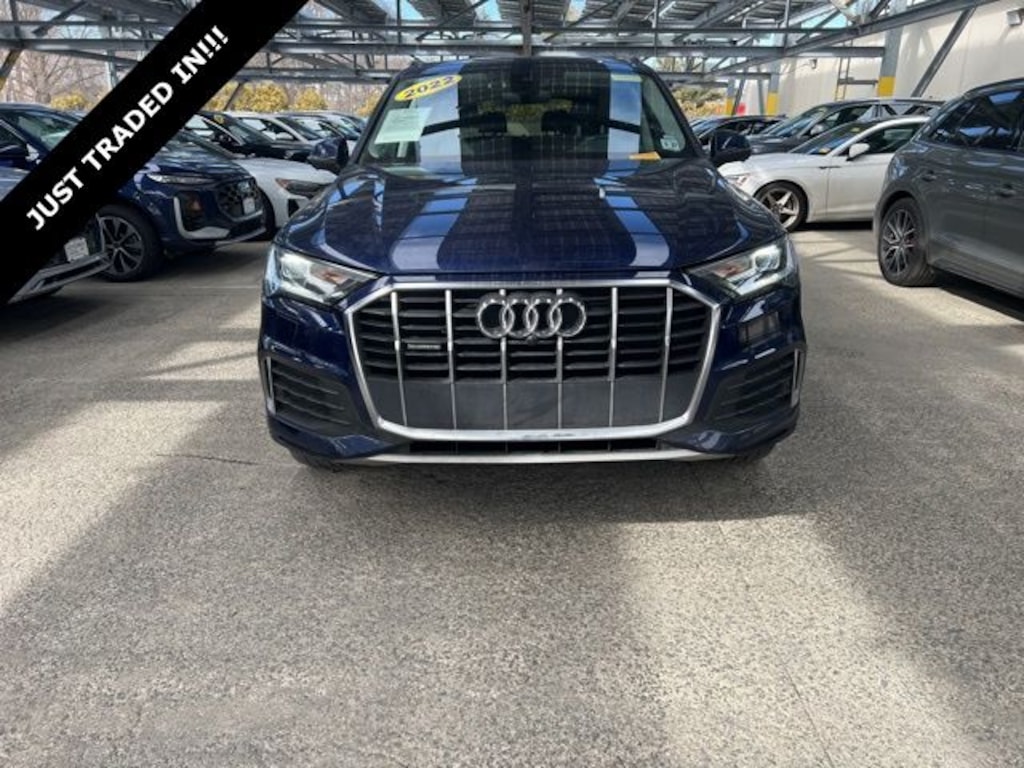 2022 Audi Q7 Navarra Blue Metallic 45 Premium Audi Phone Box w/Wireless Charging, Convenience Package, Heated Steering Wheel, Navigation system: Audi MMI Navigation plus with Touch Response, Topview Camera System. CARFAX One-Owner. Certified. quattro quattro 8-Speed Automatic with Tiptronic 2.0L 4-Cylinder TFSI